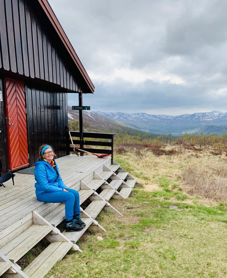 Framme på Berdalsbu etter nesten 2 mil. En mann fra Sveits har fyrt opp hytta for en liten halvtime siden. Han er forresten ute i samme ærend som oss. Nå blir det snart betasuppe med pølse!