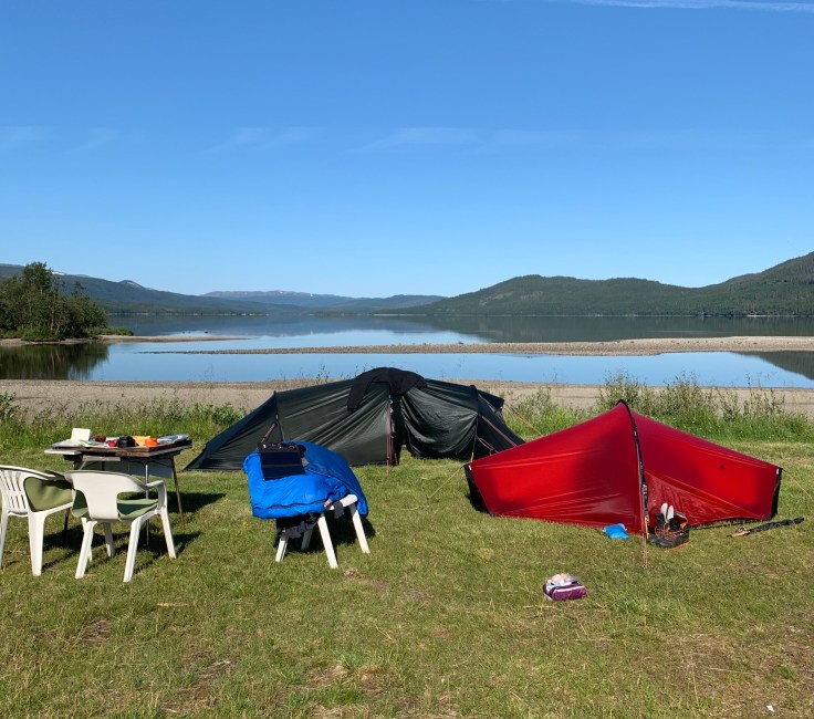 Erling bor også her på campingen, han går også Norge på langs – men etappevis. Han kjente på sekken min og sa: Oj, det hadde jeg aldri klart å bære…