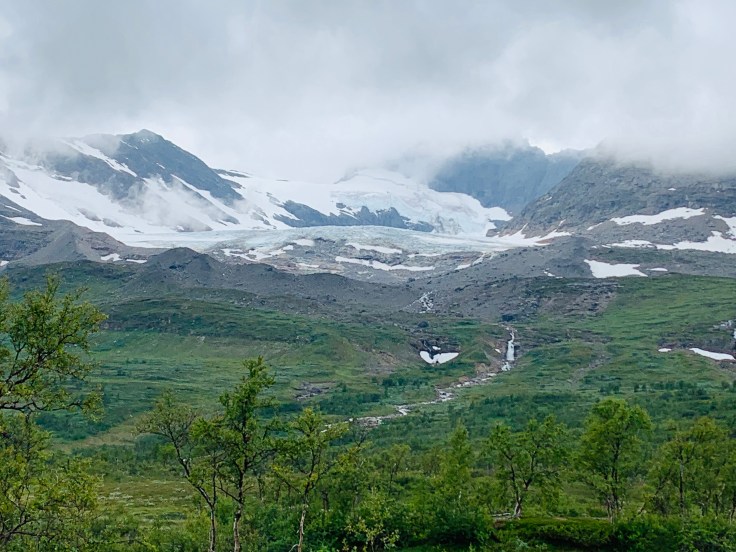 Okstindan hadde litt skydekke på toppene – men mange isbreer kom til syne på ulike tidspunkt.