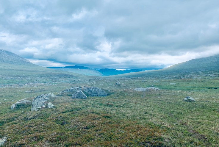 Omsider sitter jeg på Saltfjellet – fjellmassivet som jeg fram til nå har forbundet med E6 og Polarsirkelsenteret. Det er nok litt mer enn det – gleder meg til fortsettelsen og å følge den gamle Telegrafruta. Det er litt grått og nå kjente jeg en regndråpe. Krukkistua er dagens mål.